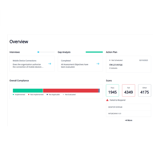 The core application offers a variety of features to help organize information that impacts compliance, analyze cybersecurity hygiene and posture, plan for remediation efforts, and prepare for attestation.