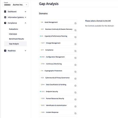 The admin application empowers service providers to monitor and encourage client progress and allows the distribution of templated content like a Shared Responsibility Matrix.