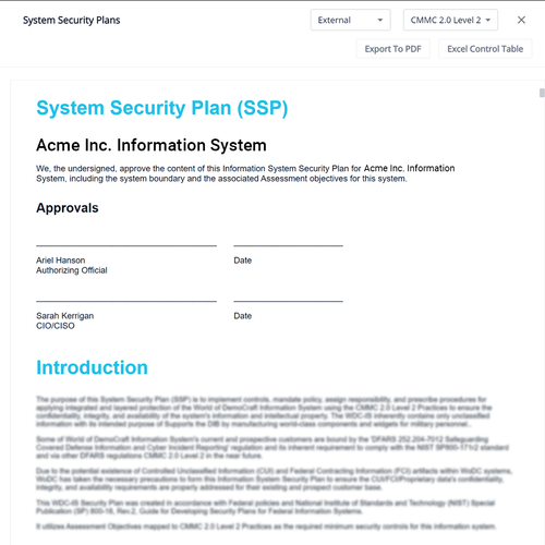 Our powerful, automated, System Security Plan compiles the critical information needed for attestation and prepares documentation for internal and external uses.